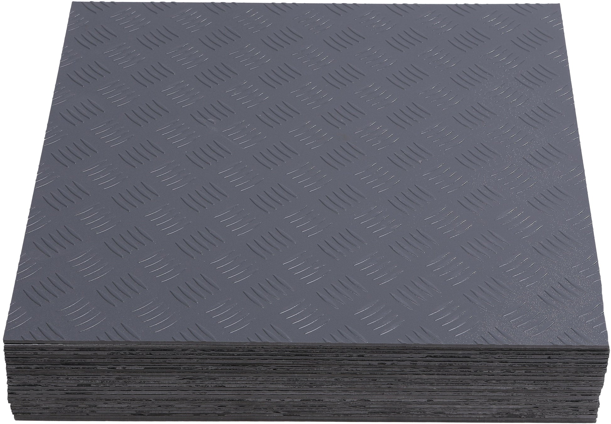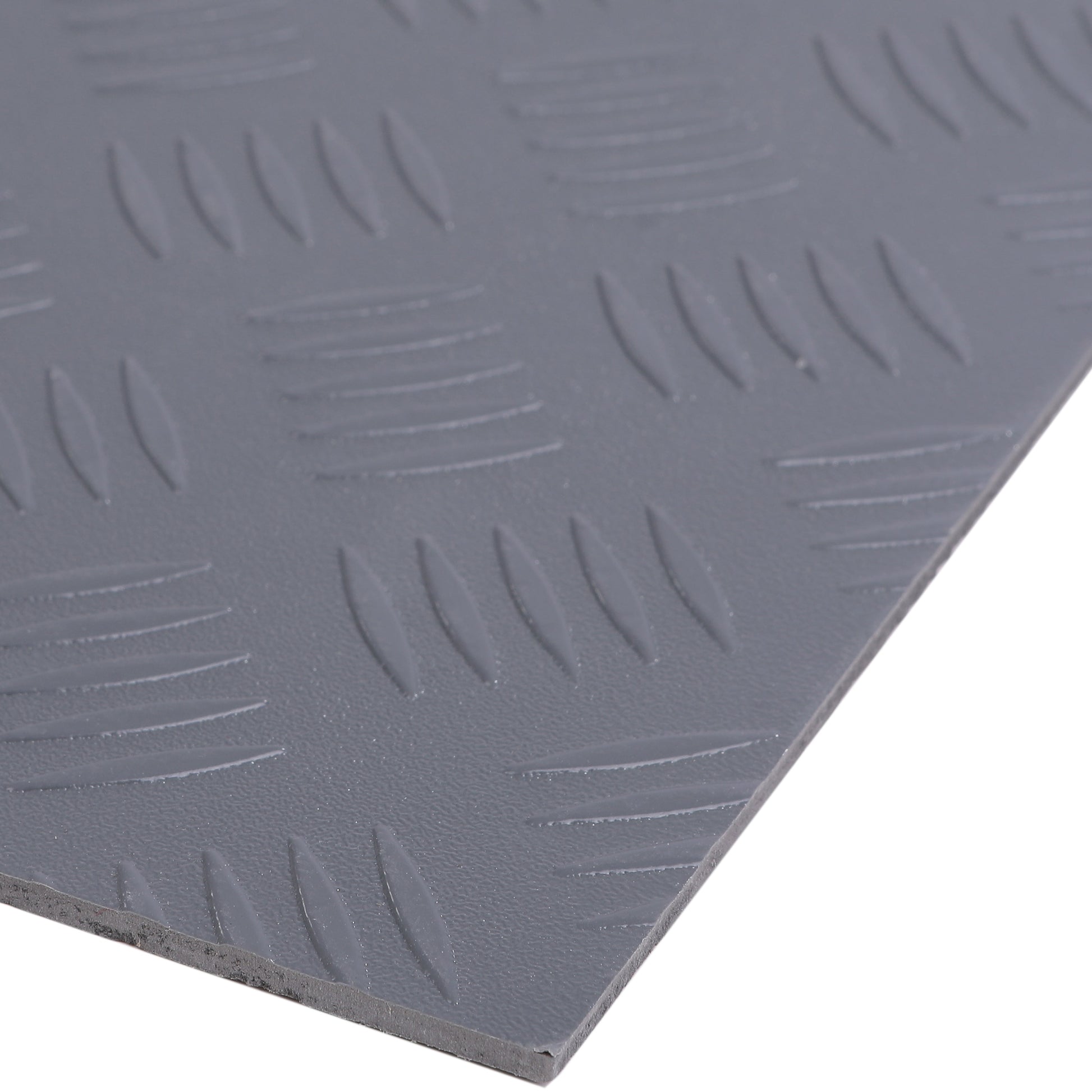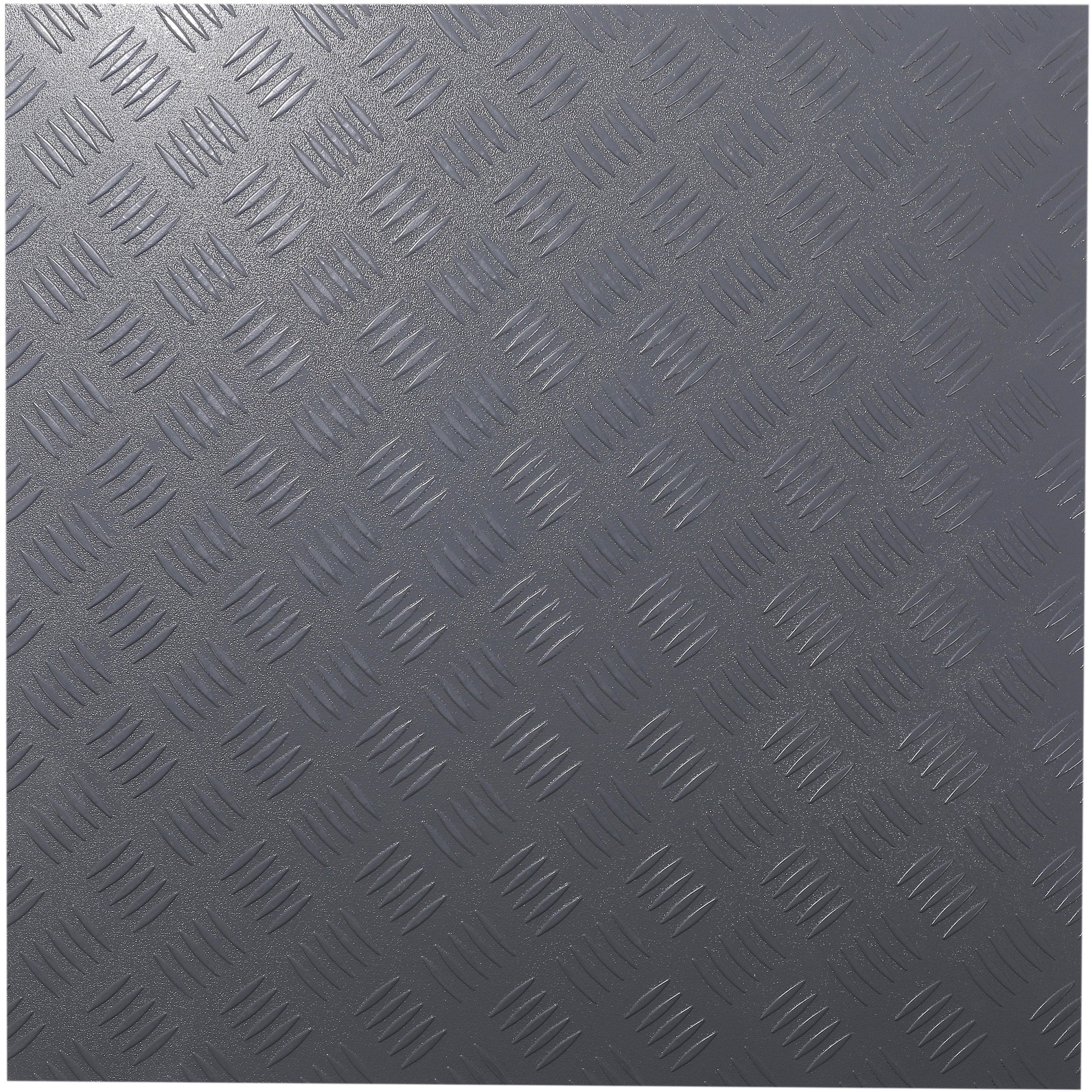 ISL チェッカープレートタイル PVC製縞鋼板 スチール/スモークグレー 45.7×45.7cm 3mm厚