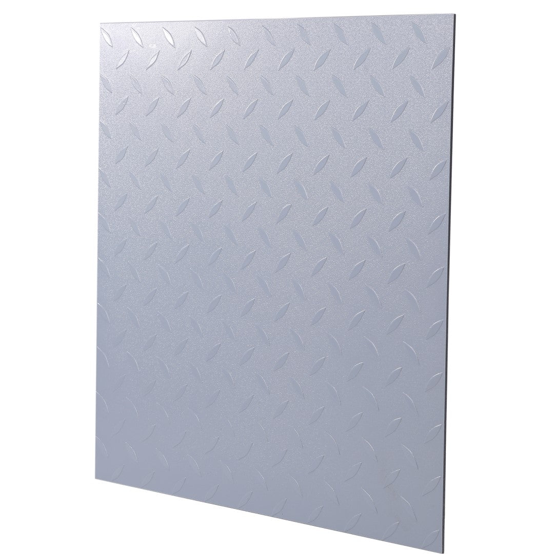 ・【仕様】サイズ:45.7cm×45.7cm 材質:PVC カラー:メタル/ライトグレー・【リアルな質感】見た目は金属のPVCパネル。縞鋼板のメタル/でダイナミックな雰囲気をお手軽に再現できます。・【丈夫で頑丈】頑丈で安定感があるので、ガレージなど負荷がかかる場所でもご利用いただけます。・【かんたん加工】カッターで切断でき、場所に合わせてぴったり設置していただけます。・【お手入れ簡単】水を弾く素材で、汚れもさっとひと拭き。塩ビ素材なので取り回しも簡単、サビの発生もありません。・