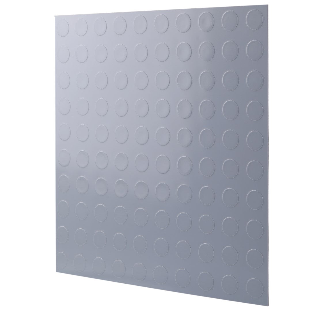 ・【仕様】サイズ:45.7cm×45.7cm 材質:PVC カラー:ドット/ライトグレー・【リアルな質感】見た目は金属のPVCパネル。縞鋼板のメタル/でダイナミックな雰囲気をお手軽に再現できます。・【丈夫で頑丈】頑丈で安定感があるので、ガレージなど負荷がかかる場所でもご利用いただけます。・【かんたん加工】カッターで切断でき、場所に合わせてぴったり設置していただけます。・【お手入れ簡単】水を弾く素材で、汚れもさっとひと拭き。塩ビ素材なので取り回しも簡単、サビの発生もありません。・